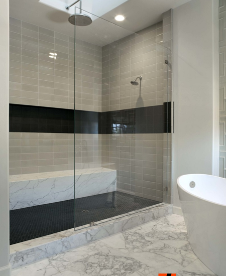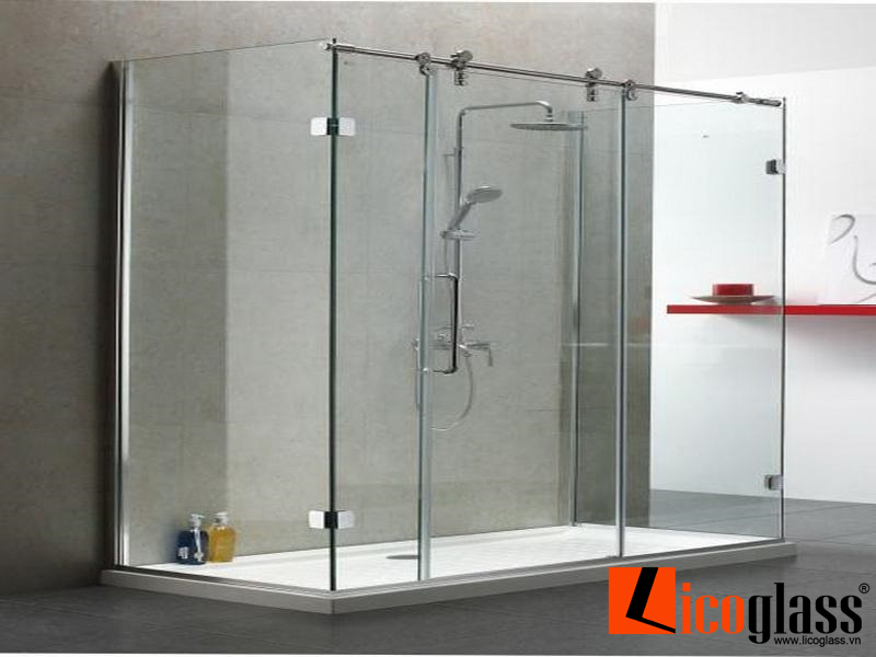 Các mẫu phòng tắm kính cửa trượt - cửa lùa đẹp: Vách tắm kính cửa trượt - cửa lùa gồm 2 tấm kính cường lực: Bộ vách tắm kính cửa trượt cửa mở gồm 3 tấm kính cường lực với kiểu dáng gần giống vách tắm kính vuông góc 90 độ