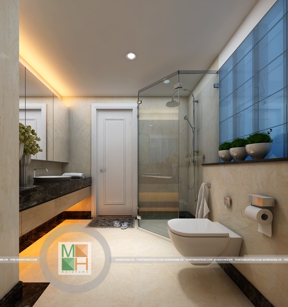 Vách ngăn kính phòng tắm còn một ưu điểm nổi trội đó là việc ngăn không nước từ bên trong có thể thoát ra bên ngoài bởi thiết kế vô cùng kín đáo, đảm bảo cho nền nhà tắm luôn được khô ráo và sạch sẽ, ngăn cách khu vực chức năng rõ ràng.