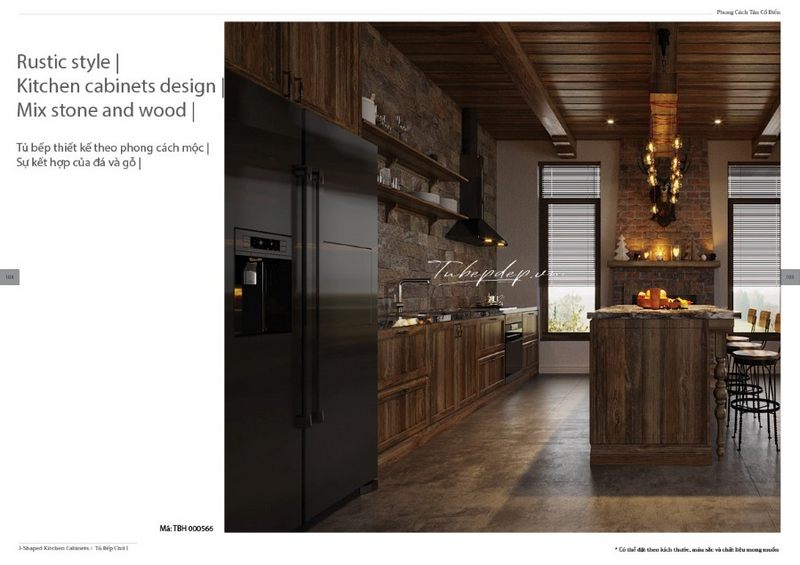 Sử dụng tủ gỗ, đảo bếp gỗ, trần nhà,.... và nhiều chi tiết mang sắc nâu ấm áp, đem sự gần gũi đến không gian phòng bếp của gia đình