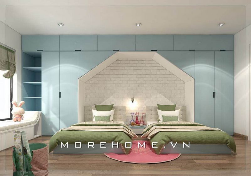 Thi công nội thất phòng trẻ em gỗ công nghiệp hiện đại dành cho bé trai và bé gái ở căn hộ chung cư Imperia Sky Garden Hà Nội
