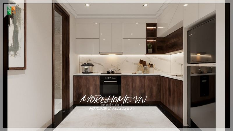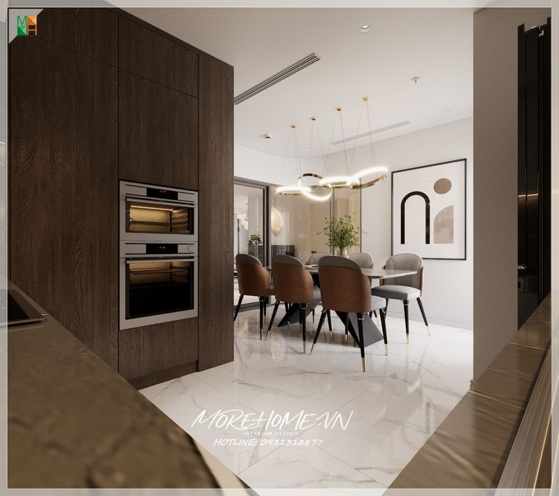 Thi công trọn gói nội thất phòng bếp nhà bếp hiện đại gỗ công nghiệp tại căn hộ Penthouse cao cấp Skylake Phạm Hùng, Hà Nội