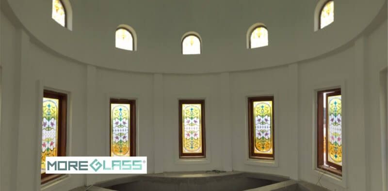 Vẻ đẹp lấp lánh kỳ lạ từ những màu sắc, những hoa văn được khắc trên kính khiến cho không gian xung quanh trở nên rực rỡ, ấn tượng