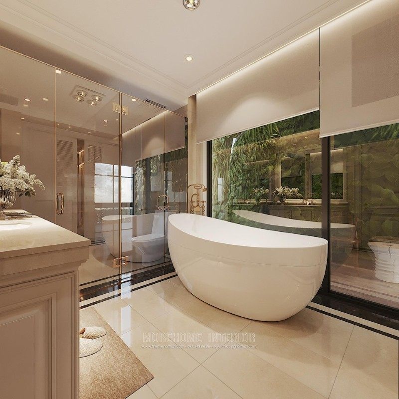 Thiết kế phòng tắm có bồn tắm hiện đại với không gian sáng tạo sự thoải mái nhất cho sử dụng của gia chủ.