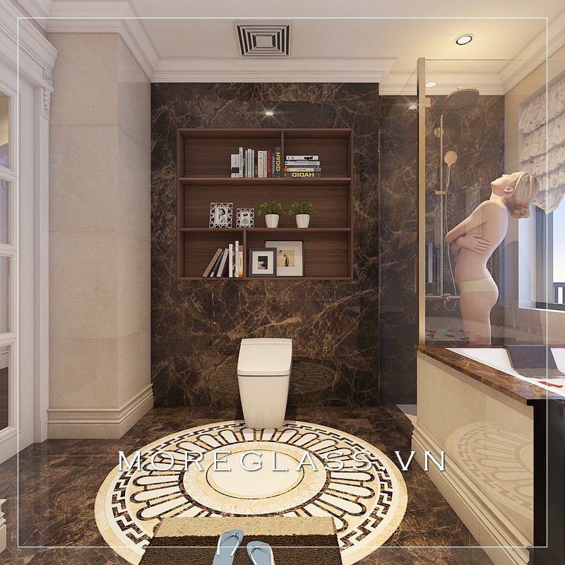 Sử dụng vách kính phòng tắm đứng cao cấp cho nhà vệ sinh biệt thự