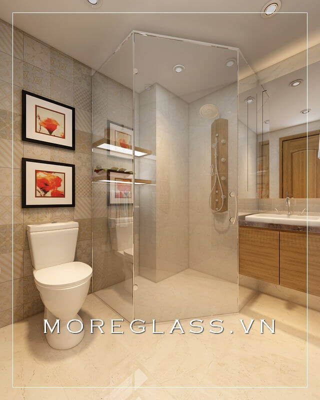 Cuốn hút với mẫu thiết kế phòng tắm kính cường lực cao cấp kết hợp thiết bị vệ sinh đơn giản, tiện nghi