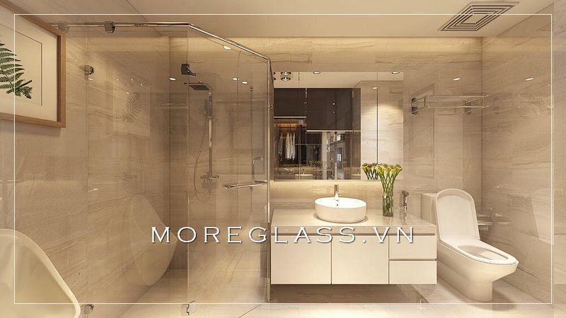 Vách tắm kính giúp căn phòng trở nên thông thoáng hơn và cung cấp nhiều tiện nghi hơn cho không gian.