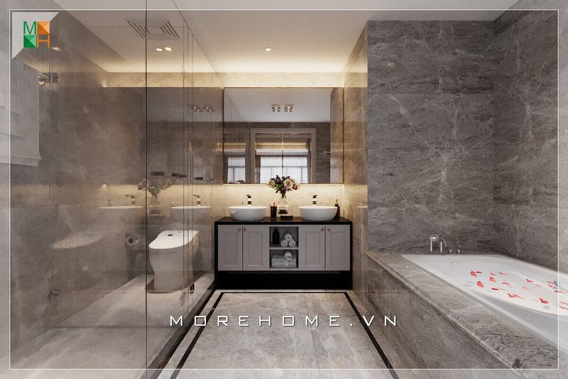 Morehome đề nghị một mẫu thiết kế nội thất nhà tắm hiện đại, phù hợp với các căn hộ cao cấp, biệt thự, nhà phố đẹp, mang đến sự sang trọng và đẳng cấp.
