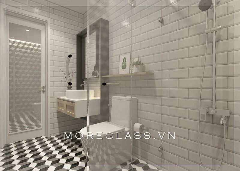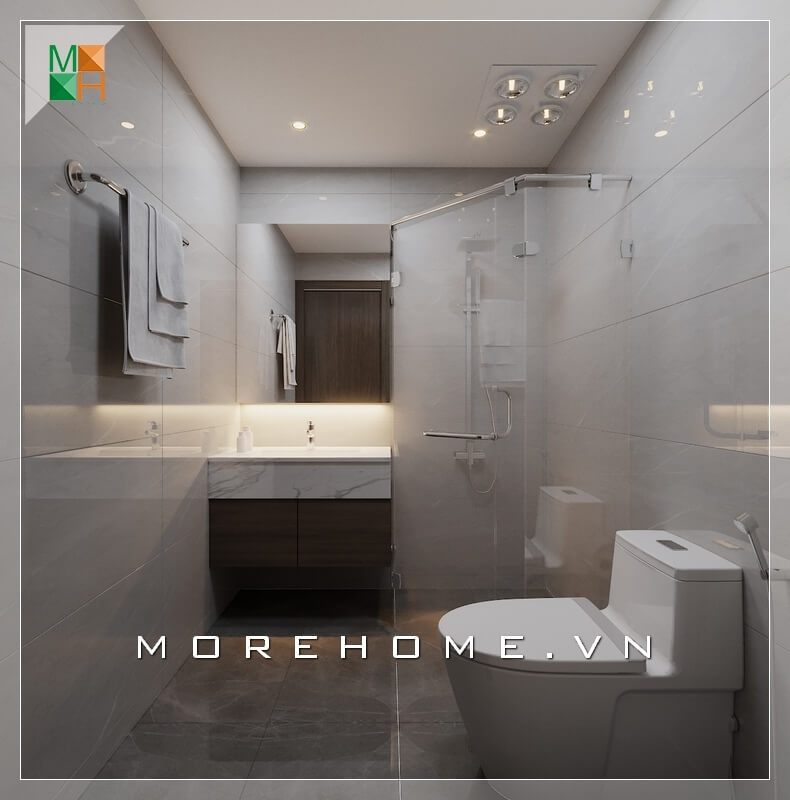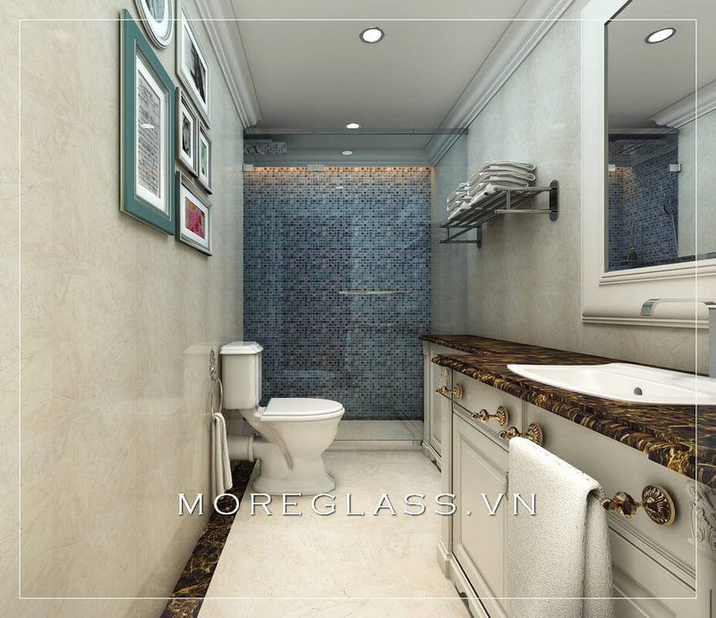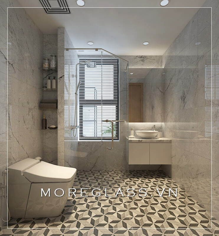 Phòng tắm hiện đại, được trang bị với vách tắm kính cao cấp, có thiết kế tinh tế và thoải mái.