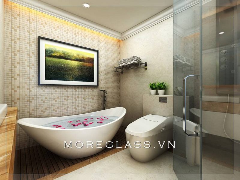 Vách tắm kính cường lực an toàn sẽ giúp không gian phòng tắm trở nên rộng rãi và thoáng mát hơn.