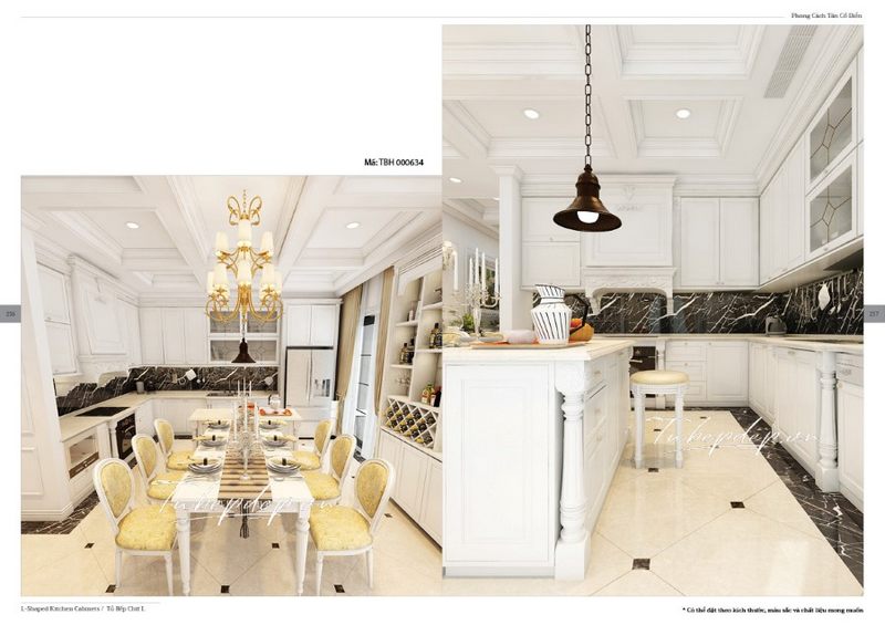 Thiết kế phòng bếp cho biệt thự theo phong cách cổ điển với sự sang trọng.